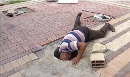 一位年仅10岁的男孩在等公交车玩耍时失足掉入正在建设的化粪池