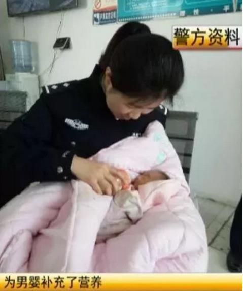 民警于是先通过电话,让派出所里的同事购买奶粉奶瓶,然后迅速将男婴带回所里。
